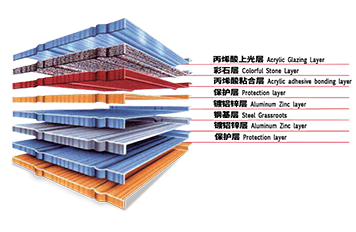 彩石金屬瓦,采用特殊工藝技術(shù)生產(chǎn)制造,以防腐性能優(yōu)異的耐指紋鍍鋁鋅鋼板為基板,以水性丙烯酸酯為粘合劑,以彩色燒結(jié)玄武巖為面層裝飾,再以耐候性極強的丙烯酸樹脂為保護層的優(yōu)質(zhì)金屬屋面材料。其美觀、輕質(zhì)、耐用、環(huán)保,近年來已經(jīng)成為國際屋面材料的主流產(chǎn)品,國內(nèi)高檔建筑使用。>